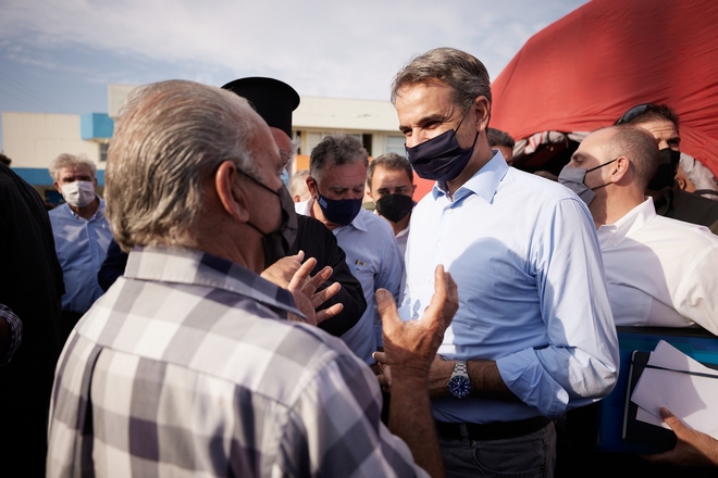 Περιοχές που επλήγησαν από τον ισχυρότατο σεισμό επισκέφθηκε ο πρωθυπουργός. Προανήγγειλε μέτρα αντίστοιχα της Εύβοιας. Ο διάλογος με δημοσιογράφο για τις φρεγάτες.