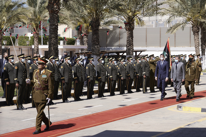 Ο πρωθυπουργός της Μεταβατικής Κυβέρνησης Εθνικής Ενότητας της Λιβύης Abdul Hamid Dbeibeh υποδέχθηκε τον Κυριάκο Μητσοτάκη στην Τρίπολη για να συζητήσουν τις σχέσεις των δύο χωρών.