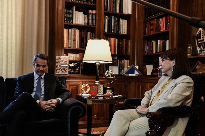 “Ασχέτως των αποφάσεων της ΕΕ, υλοποιούμε το εθνικό μας σχέδιο για την ενέργεια”, σημείωσε χαρακτηριστικά ο πρωθυπουργός, Κυριάκος Μητσοτάκης, κατά τη συνάντηση του με την Πρόεδρο της Δημοκρατίας, Κατερίνα Σακκελαροπούλου.