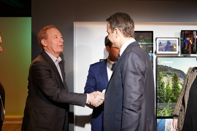 Ο κ.Μητσοτάκης, ο οποίος νωρίτερα είχε συναντηθεί με τον πρόεδρο της Microsoft, τόνισε ότι η κυβέρνηση έχει προχωρήσει γρήγορα σε μεταρρυθμίσεις και απηύθυνε κάλεσμα σε επενδυτές.