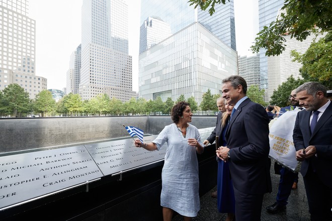Το μνημείο στη μνήμη των θυμάτων των τρομοκρατικών επιθέσεων της 11ης Σεπτεμβρίου 2001 στη Νέα Υόρκη επισκέφθηκε ο Πρωθυπουργός Κυριάκος Μητσοτάκης συνοδευόμενος από τη σύζυγό του Μαρέβα Γκραμπόφσκι – Μητσοτάκη.