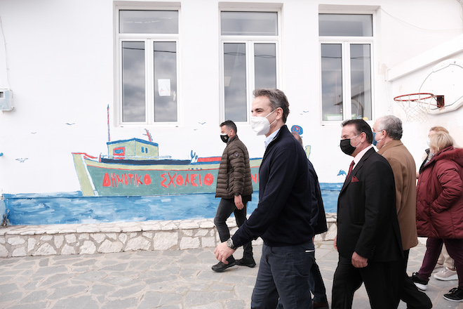 Επίσκεψη Κυριάκου Μητσοτάκη στην Ικαρία, 6 Φεβρουαρίου 2021. Eurokinissi