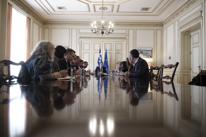 Ο πρωθυπουργός Κυριάκος Μητσοτάκης είχε σύσκεψη για το προσφυγικό- μεταναστευτικό με τον αντιπρόεδρο της Κομισιόν Μαργαρίτη Σχοινά και την επίτροπο Ίλβα Γιόχανσον, που θα επισκεφθούν και την Τουρκία.