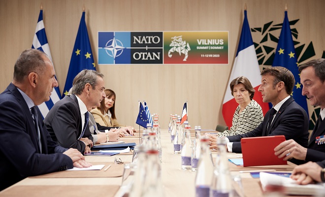 Στον απόηχο του deal Τουρκίας- Δύσης μετά το “ναι” Ερντογάν στην ένταξη της Σουηδίας στο ΝΑΤΟ, ο πρωθυπουργός Κυριάκος Μητσοτάκης συναντήθηκε στο περιθώριο της Συνόδου Κορυφής της Συμμαχίας, στο Βίλνιους, με τον Πρόεδρο της Γαλλίας, Εμανουέλ Μακρόν.