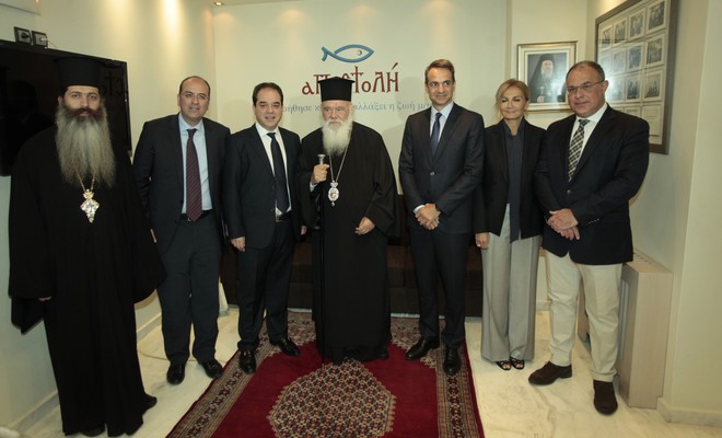 O κ. Μητσοτάκης ανέφερε ότι στα δύσκολα χρόνια της κρίσης, στα πέτρινα χρόνια του μνημονίου, η Ελλάδα βρήκε στήριγμα στην Εκκλησία, σημειώνοντας πως «η Εκκλησία δεν εκπλήρωσε μόνο τον πνευματικό ρόλο της, αλλά επαναβεβαίωσε και την κύρια κοινωνική αποστολή της». Επίσης, ενημερώθηκε για το έργο της «Αποστολής», καθώς δεκάδες χιλιάδες μερίδες φαγητού διανέμονται κάθε μέρα σε κάθε γωνιά της Ελλάδας, ενώ χιλιάδες δέματα αγάπης με όλα τα απαραίτητα φθάνουν κάθε μήνα στα σπίτια χιλιάδων οικογενειών. Σύμφωνα με τον ίδιο, εκατοντάδες ιδρύματα και αναρίθμητες φιλανθρωπικές και κοινωνικές οργανώσεις της Εκκλησίας απαλύνουν τον ανθρώπινο πόνο, χωρίς διακρίσεις και συχνά χωρίς κρατική βοήθεια, αλλά με εξειδικευμένο και αφοσιωμένο προσωπικό σε όλη τη χώρα.