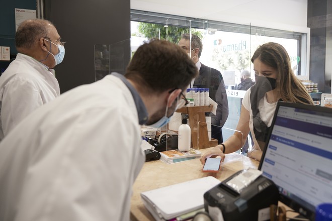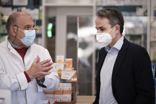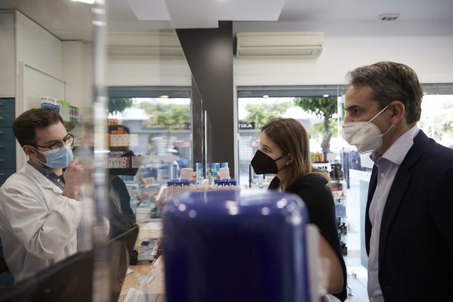 Επίσκεψη σε φαρμακείο της Καλλιθέας πραγματοποίησε ο Κυριάκος Μητσοτάκης μαζί με την κόρη του, Δάφνη. Ο διάλογος με τον φαρμακοποιό και οι δηλώσεις του Πρωθυπουργού για τα self-tests.