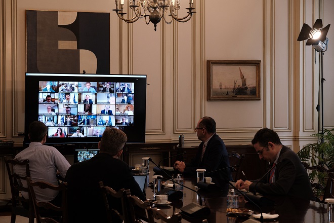 Συνεδρίαση του υπουργικού συμβουλίου με τηλεδιάσκεψη την Τρίτη 24 Μαρτίου 2020. (EUROKINISSI/ΓΡΑΦΕΙΟ ΤΥΠΟΥ ΠΡΩΘΥΠΟΥΡΓΟΥ/ΔΗΜΗΤΡΗΣ ΠΑΠΑΜΗΤΣΟΣ) Eurokinissi
