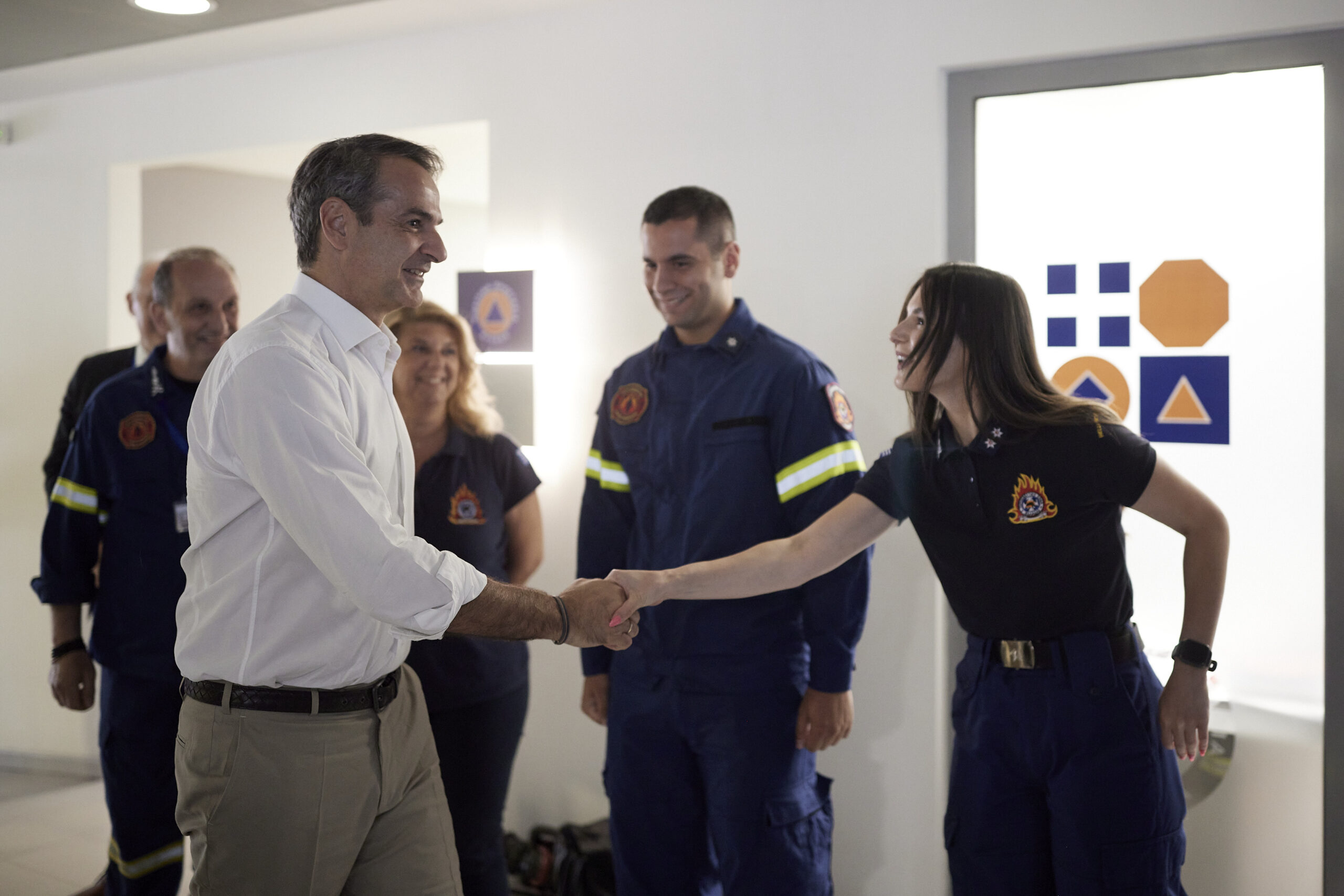 Ο πρωθυπουργός επισκέφθηκε το υπουργείο Κλιματικής Κρίσης και Πολιτικής Προστασίας. “Έχουμε πια κουλτούρα εκκενώσεων - Το 112 είναι για το καλό των πολιτών”, τόνισε