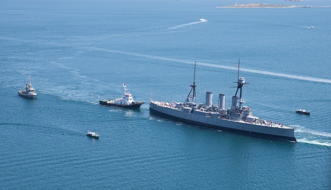 Στη μαρίνα του Φλοίσβου βρίσκεται το θωρηκτό Αβέρωφ, μετά την επιτυχή ολοκλήρωση των προγραμματισμένων εργασιών του