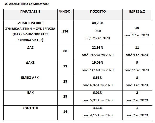 ΠΑΣΚΕ και ΔΑΣ σημείωσαν αύξηση των δυνάμεών τους σε αντίθεση με τη ΔΑΚΕ η οποία υποχώρησε σε σχέση με το 2020.