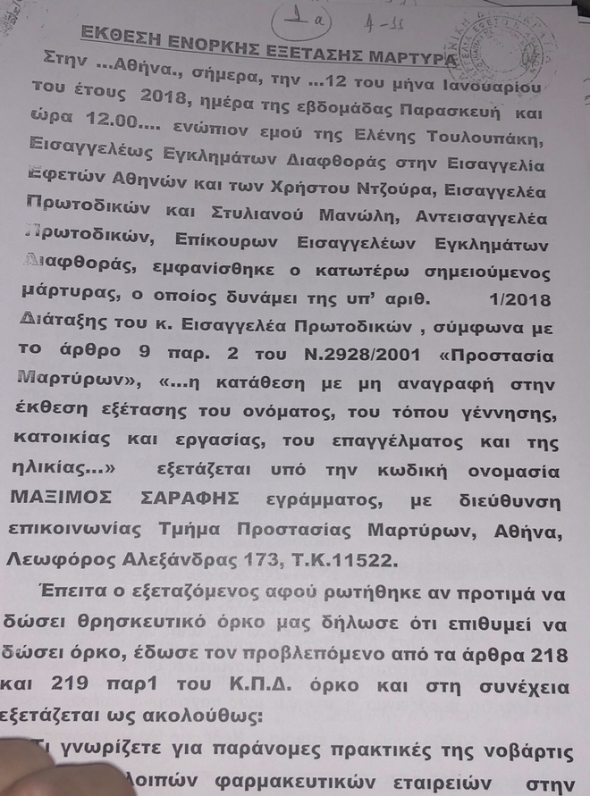 Novartis: Η κατάθεση του προστατευόμενου μάρτυρα ‘Σαράφη’ για τον Δ. Αβραμόπουλο