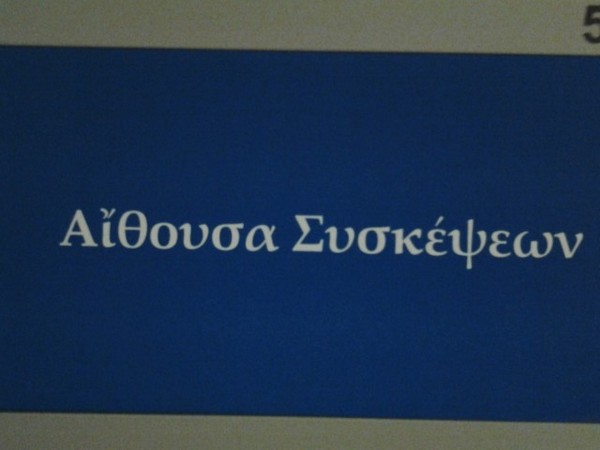 “Αἲθουσα συσκέψεων” λέει η άλλη πινακίδα και η αλλαγή είναι εμφανής.
