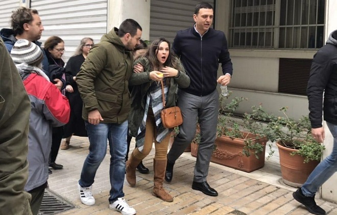 Ο Κικίλιας βοηθά διαδηλώτρια που δέχθηκε δακρυγόνα στο Σύνταγμα