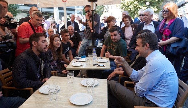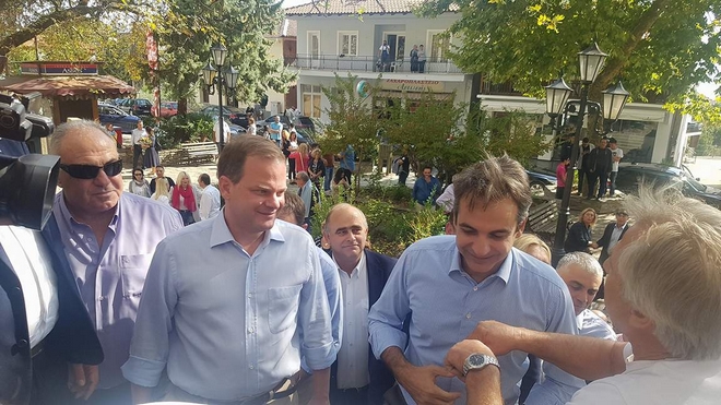 Στο πλαίσιο της περιοδείας του ο πρόεδρος της ΝΔ επισκέφθηκε το σύλλογο θεραπευτικής ιππασίας για παιδιά με ειδικές ανάγκες ΚΕΘΙΣ και έφαγε μπουγάτσα με νέους σε καφέ της πόλης