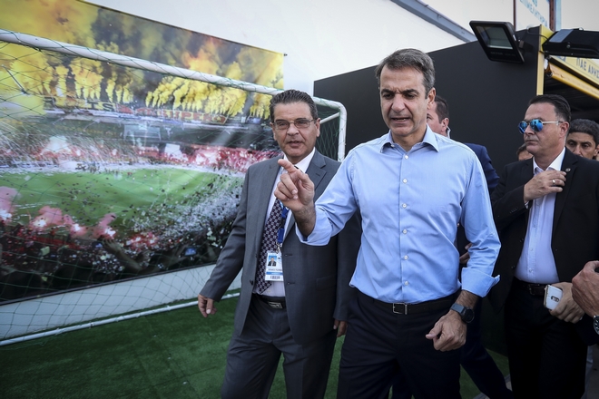 Τον πρόεδρο της ΝΔ υποδέχθηκε ο πρόεδρος της ΠΑΕ Άρης, Θόδωρος Καρυπίδης στο περίπτερο της ομάδας στη ΔΕΘ.