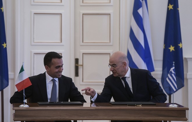 Τη συμφωνία υπέγραψαν ο υπουργός Εξωτερικών Νίκος Δένδιας με τον Ιταλό ομόλογό του Λουίτζι Ντι Μάιο (Luigi Di Maio), ο οποίος βρίσκεται σήμερα στην Αθήνα.
