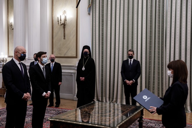 Με πολιτικό όρκο ορκίστηκαν οι Γιώργος Αμυράς και Νικόλας Γιατρομανωλάκης το μεσημέρι της Τρίτης (04/1) στο Προεδρικό Μέγαρο, ενώπιον του Πρωθυπουργού Κυριάκου Μητσοτάκη και της Προέδρου της Δημοκρατίας Κατερίνας Σακελλάροπούλου.