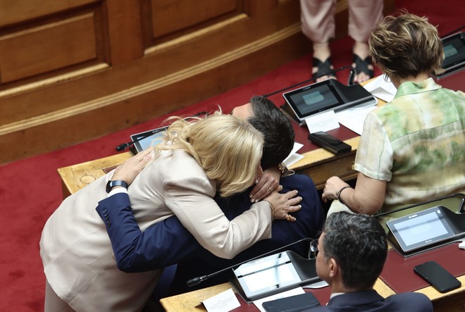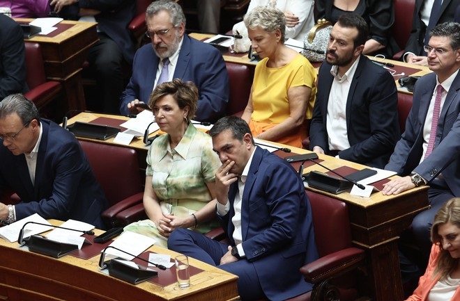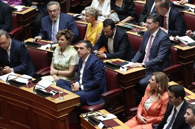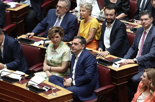Στην πρώτη σειρά των εδράνων βρέθηκε για την ορκωμοσία της νέας Βουλής ο τέως αρχηγός του ΣΥΡΙΖΑ-Προοδευτική Συμμαχία, Αλέξης Τσίπρας στην πρώτη του παρουσία στα έδρανα του κοινοβουλίου μετά την ανακοίνωση περί αποχώρησης από την ηγεσία του κόμματος.