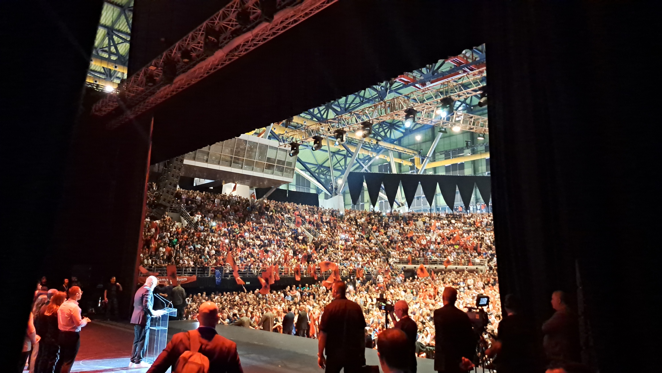 Σύμφωνα με πληροφορίες του NEWS 24/7, άλλωστε, το γεγονός ότι δεν δόθηκε μεγαλύτερος χώρος για τις ανάγκες της ομιλίας, τροφοδότησε σκέψεις για πραγματοποίησή της στην Πλατεία Συντάγματος. Εν τέλει, παραχωρήθηκε το κλειστό του Γαλατσίου, το οποίο ωστόσο αποδείχτηκε μικρό για να χωρέσει τις χιλιάδες κόσμου.