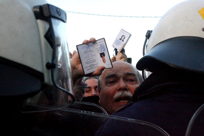 Δείχνοντας τις ταυτότητές τους, βουλευτές του ΣΥΡΙΖΑ καλούσαν τους άνδρες των ΜΑΤ να επιτρέψουν στους ίδιους να εισέλθουν κατά την διαδικασία καταμέτρησης.