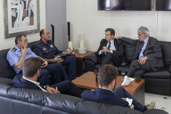 Από το Υπουργείο Προστασίας του Πολίτη παρέστησαν επίσης ο Γενικός Γραμματέας Πολιτικής Προστασίας Νίκος Χαρδαλιάς, ο Αρχηγός Πυροσβεστικού Σώματος, Αντιστράτηγος Π.Σ. Βασίλειος Ματθαιόπουλος και ο Διοικητής του ΕΣΚΕ, Υποστράτηγος Π.Σ. Ιάκωβος Κλεφτοσπύρος.