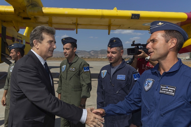 Κάθε πρωί με τους φίλους, τον Γενικό Γραμματέα Πολιτικής Προστασίας, με τον Αρχηγό, με το Συντονιστικό Κέντρο αναρωτιόμασταν πόσα θα πετάξουν και πετούσαν όλα. Και πετούσαν όλα. Και έτσι ο προγραμματισμός μας ήταν διαρκώς στο πλαίσιο της προηγούμενης μέρας, διαρκώς μέσα στο σχεδιασμό είχαμε τα αεροπλάνα τα οποία υπολογίζαμε ότι θα έχουμε. Αυτό είναι το επίτευγμά μας. Και θα το συνεχίσουμε. Και θα πάρουμε αποφάσεις κ. Επίτροπε πολύ σύντομα ως χώρα, ως Κυβέρνηση, πολύ σύντομα για το τι θα κάνουμε με τον εναέριο στόλο μας τα επόμενα χρόνια. Με βάση τις ανάγκες που έχει η χώρα, με βάση το σχεδιασμό του rescEU, με βάση το φιλόδοξο σχεδιασμό που έχει το rescEU για περαιτέρω παραγγελίες, μαζική παραγγελία με χαμηλό κόστος αεροπλάνων νέας γενιάς. Είμαστε εδώ για να τα δούμε όλα.