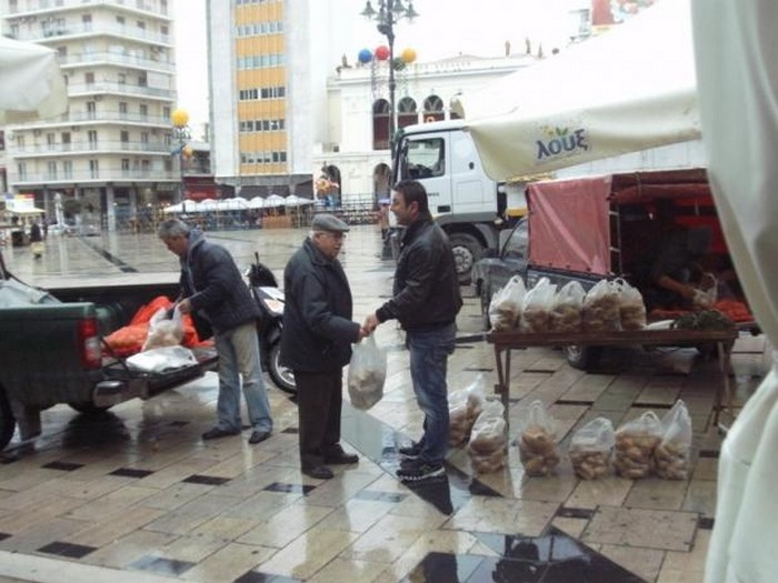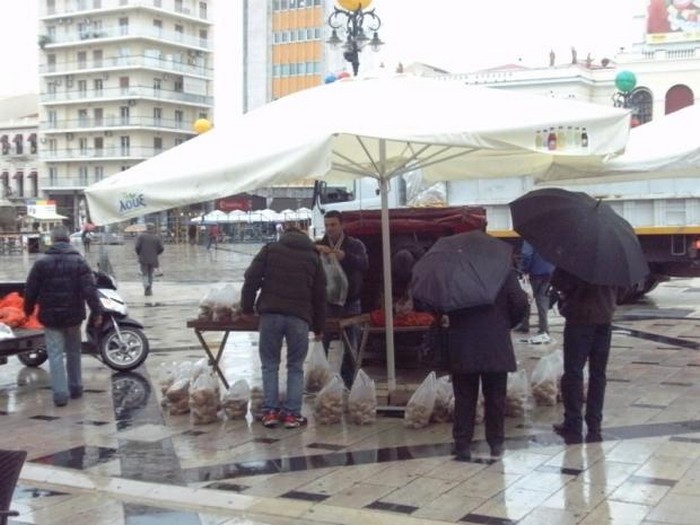 Περισσότερους από τέσσερις τόνους πατάτες, αυγά και μπρόκολα μοίρασαν στην πλατεία του Αγίου Γεωργίου στην Πάτρα, παραγωγοί από τη Δυτική Αχαΐα.