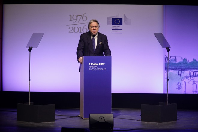 Με συγκίνηση και σε προσωπικό τόνο, έκλεισε το πρώτο μέρος της εκδήλωσης, ο επικεφαλής της Αντιπροσωπείας της Ευρωπαϊκής Επιτροπής στην Ελλάδα, Πάνος Καρβούνης, που είχε αναλάβει το αξίωμά του το 2010 και αποχωρεί εφέτος.