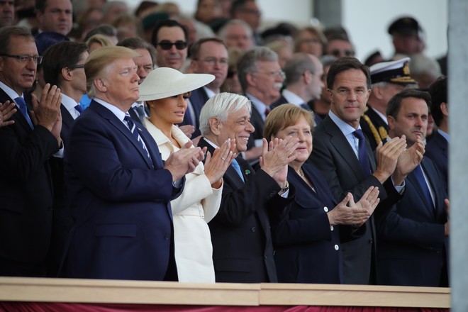 Σύντομη συνομιλία είχαν Προκόπης Παυλόπουλος και Ντόναλντ Τραμπ κατά τη διάρκεια τελετής για την 75η επέτειο από την απόβαση στη Νορμανδία.