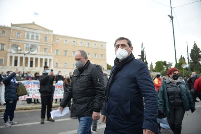 Στο συλλαλητήριο σωματείων και φορέων της Πάτρας και της Αττικής στο Σύνταγμα παρευρέθηκε ο δήμαρχος Πατρέων, Κώστας Πελετίδης.