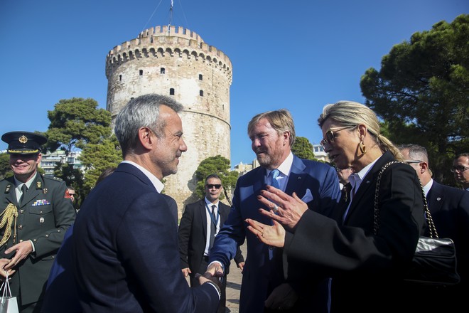 Ο βασιλιάς Γουλιέλμος-Αλέξανδρος και η σύζυγός του, Μαξίμα επισκέφτηκαν το ιστορικό κέντρο της Θεσσαλονίκης, ξεναγήθηκαν στα μνημεία της πόλης, ενώ έκαναν και ποδήλατο στην παραλία.