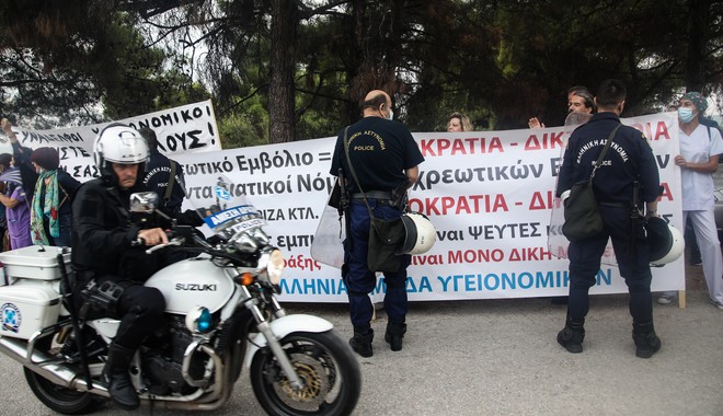 Με αποδοκιμασίες και συνθήματα υποδέχθηκαν τον Υπουργό Υγείας, Θάνο Πλεύρη, υγειονομικοί που διαμαρτύρονται για τις αναστολές εργασίας ανεμβολίαστων συναδέλφων τους.