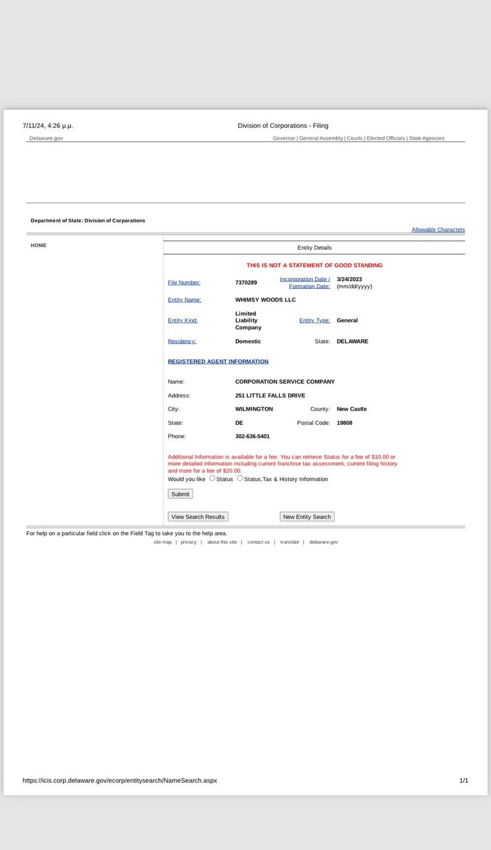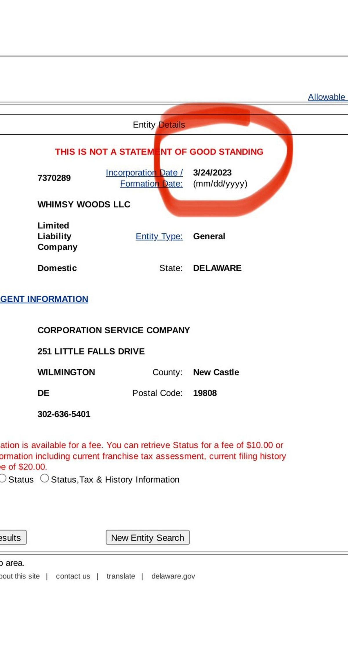 Επίσης αυτή η εταιρία στην επόμενη φωτογραφία είναι αυτή που ίδρυσε τον Μάρτιο του 2023 στο Ντέλαγουεαρ όπου εκεί έβαλε το σπίτι που αγόρασε στην Αμερική (έπρεπε και αυτή να τη δηλώσει!!)
