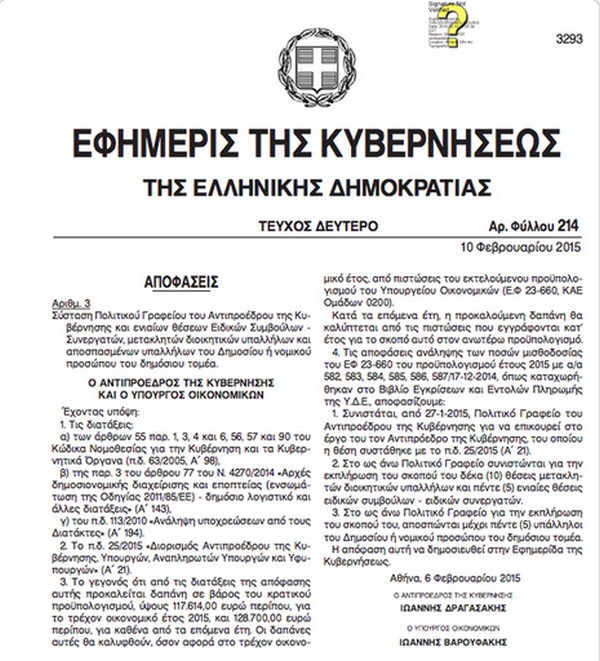 TO ΦΕΚ ΤΟΥ ΕΥΑΓΓΓΕΛΟΥ ΒΕΝΙΖΕΛΟΥ