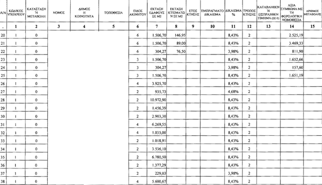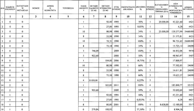 Δείτε στους πίνακες αναλυτικά το μέρος της φορολογικής δήλωσης που αφορά στα ακίνητα.
