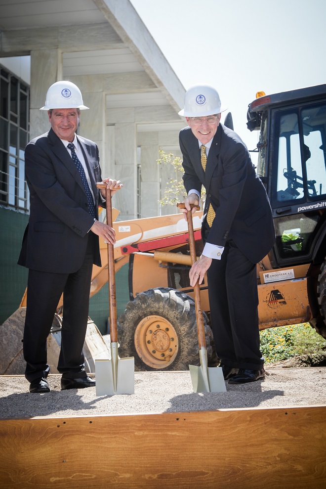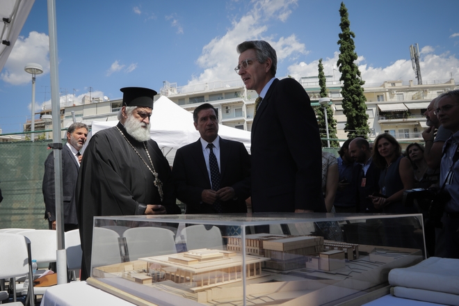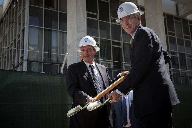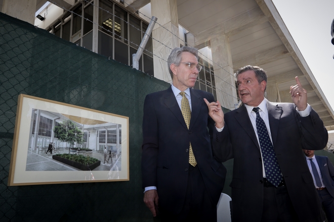 Με το ζεστό αττικό φως να φωτίζει τη νέα πτέρυγα της αμερικανικής πρεσβείας εγκαινιάστηκαν οι εργασίες της ανακαίνισης παρουσία του Αμερικανού πρέσβη Τζέφρυ Παιατ και του Δημάρχου της Αθήνας Γιώργου Καμίνη.
