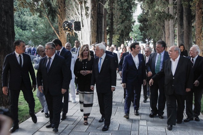 Όλα όσα κατέγραψε ο φωτογραφικός φακός στη δεξίωση για τα 43 χρόνια από την Αποκατάσταση της Δημοκρατίας. Το τετ α τετ Τσίπρα - Μητσοτάκη και το πηγαδάκι Τσίπρα- Γεννηματά- Θεοδωράκη