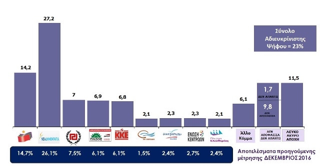 Συγκεκριμένα, τα ποσοστά διαμορφώνονται ως εξής (σε παρένθεση επίσης τα ποσοστά στην προηγούμενη δημοσκόπηση της MRΒ τον Δεκέμβριο του 2016):