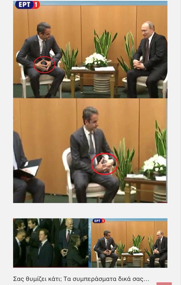 Αυτό του το συμπέρασμα βγήκε, παρατηρώντας τα χέρια του προέδρου της ΝΔ την ώρα που συνομιλούσε με τον Βλαντιμίρ Πούτιν.