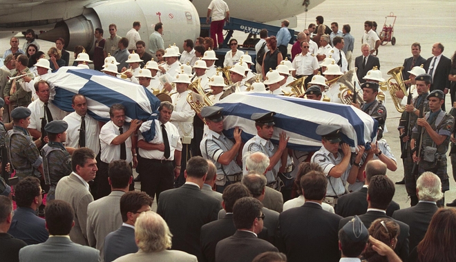 Όταν έφτασαν τα φέρετρα στο αεροδρόμιο του Ελληνικού. Eurokinissi
