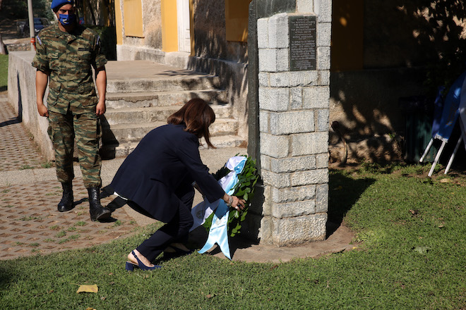 Σακελλαροπούλου: Κατέθεσε στεφάνι στην προτομή του Σπύρου Μουστακλή, στα πρώην κρατητήρια ΕΑΤ – ΕΣΑ