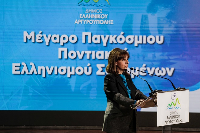 «Η αναγγελία της ανέγερσης του Μεγάρου Παγκόσμιου Ποντιακού Ελληνισμού Σουρμένων στον Δήμο Ελληνικού – Αργυρούπολης, με δαπάνη του Σπύρου Λάτση, μας γεμίζει χαρά και συγκίνηση και εύχομαι να καταστεί μια ακόμη εστία διαφύλαξης των πλούσιων παραδόσεών σας και της συλλογικής μας μνήμης» τόνισε η Πρόεδρος της Δημοκρατίας κατά τον χαιρετισμό της στην εκδήλωση.