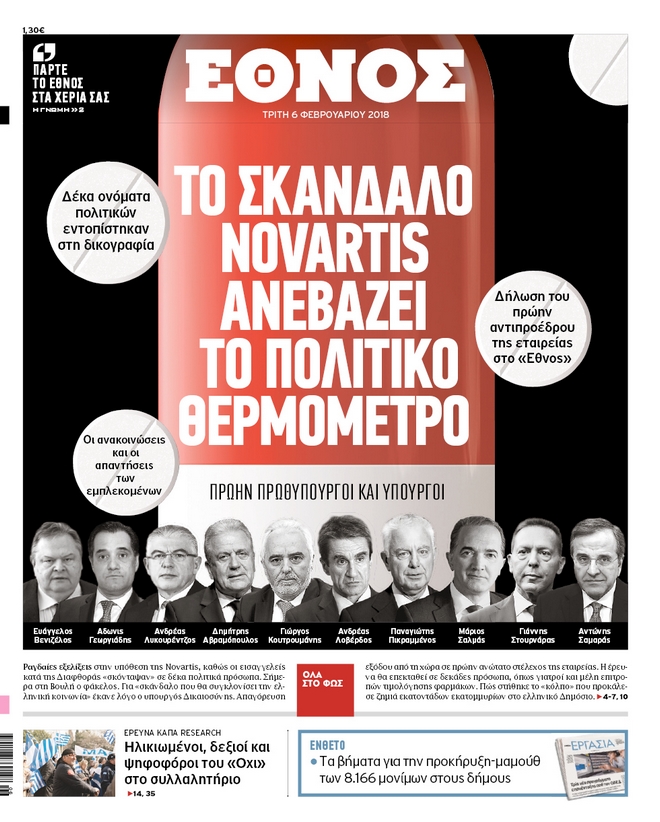 Εξάλλου, τόσο ο υπουργός Δικαιοσύνης όσο και ο αναπληρωτής υπουργός κατέστησαν σαφές πως η συγκεκριμένη υπόθεση ουδόλως αμελητέα είναι. Ο Σταύρος Κοντονής, που γενικώς «μετράει» τα λόγια του, έκανε λόγο για «τεράστιο σκάνδαλο», εξηγώντας πως φαρμακευτικές εταιρείες παράνομα υπερκοστολογούσαν φάρμακα, με αποτέλεσμα να εκτοξευθεί η φαρμακευτική δαπάνη. Περισσότερο… γλαφυρός ήταν ο Δημήτρης Παπαγγελλόπουλος, που χαρακτήρισε την υπόθεση Novartis ως «το μεγαλύτερο σκάνδαλο από συστάσεως του ελληνικού κράτους».