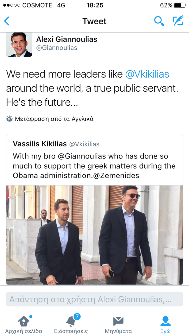 Μάλιστα ο κ.Γιαννούλιας σε ανάρτησή του έπλεξε το εγκώμιο του βουλευτή της ΝΔ, λέγοντας πως η πολιτική χρειάζεται ανθρώπους σαν το Βασίλη Κικίλια. “Είναι το μέλλον” είπε χαρακτηριστικά.