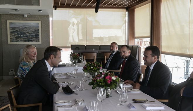 Γεύμα εργασίας προς τιμήν του πρωθυπουργού της Βόρειας Μακεδονίας παρέθεσε ο Κυριάκος Μητσοτάκης. Τι συζήτησαν