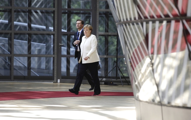 Μακρόν και Μέρκελ δήλωσαν ότι ελπίζουν σε μία ταχεία απόφαση σήμερα το μεσημέρι και, σύμφωνα με ευρωπαϊκή πηγή, είναι πιθανόν ότι έχει βρεθεί μία συμβιβαστική λύση.
