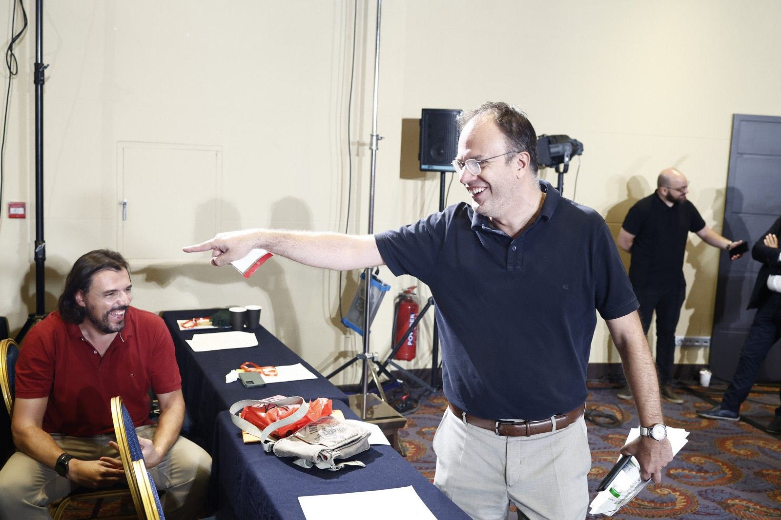 Μετά από την άφιξή του, ο Στέφανος Κασσελάκης κάλεσε μέσα στη συνεδρίαση τους εργαζόμενους, οι οποίοι ξεκίνησαν να φωνάζουν συνθήματα: “Απλήρωτη εργασία, χρωστούμενοι μισθοί, φέρατε τη διάλυση σε Κόκκινο και Αυγή”.