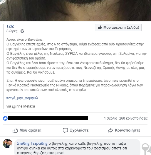 ΣΥΡΙΖΑ: Στέλεχος της ΝΔ καλύπτει τη φασιστική επίθεση στον 28χρονο στο Πέραμα