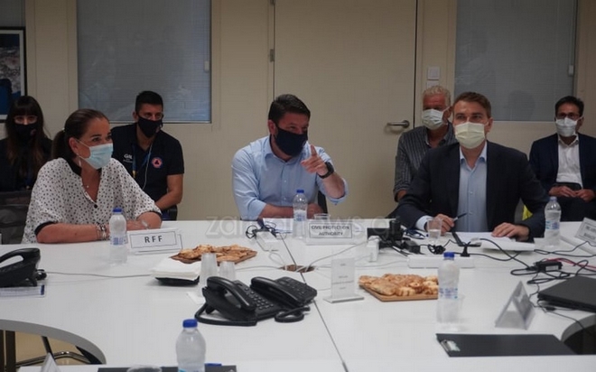 Αμέσως μετά την άφιξη του κ. Χαρδαλιά ξεκίνησε σύσκεψη παρουσία της Ντόρας Μπακογιάννη, του δημάρχου Χανίων Παναγιώτη Σημανδηράκη, του αντιπεριφερειάρχη Χανίων Νίκου Καλογερή, του δημάρχου Πλατανιά Γιάννη Μαλανδράκη και εμπλεκόμενων φορέων (ΥΠΑ, Φορείς Διαχείρισης Αεροδρομίων, Στελέχη των ΕΔ, της ΕΛΑΣ και του ΠΣ), για τον καλύτερο συντονισμό της εφαρμογής των μέτρων και πρωτοκόλλων ασφαλούς λειτουργίας των αεροδρομίων.