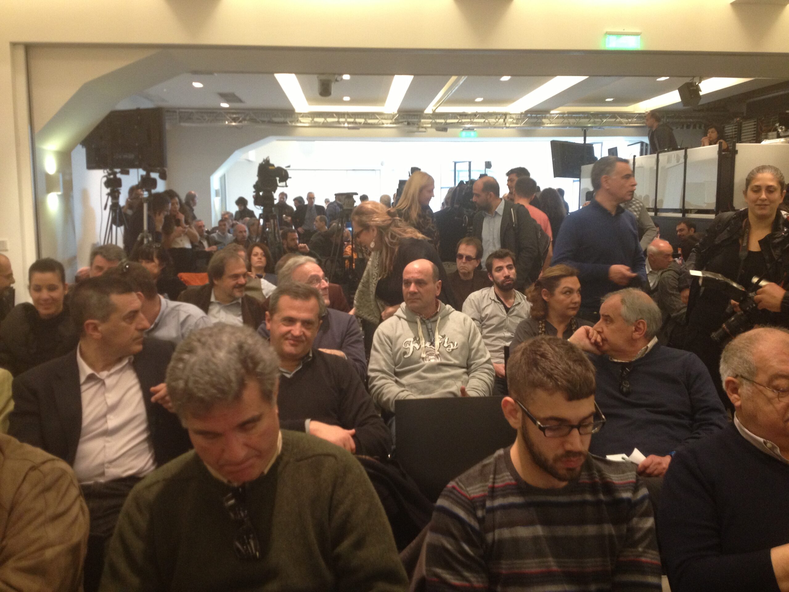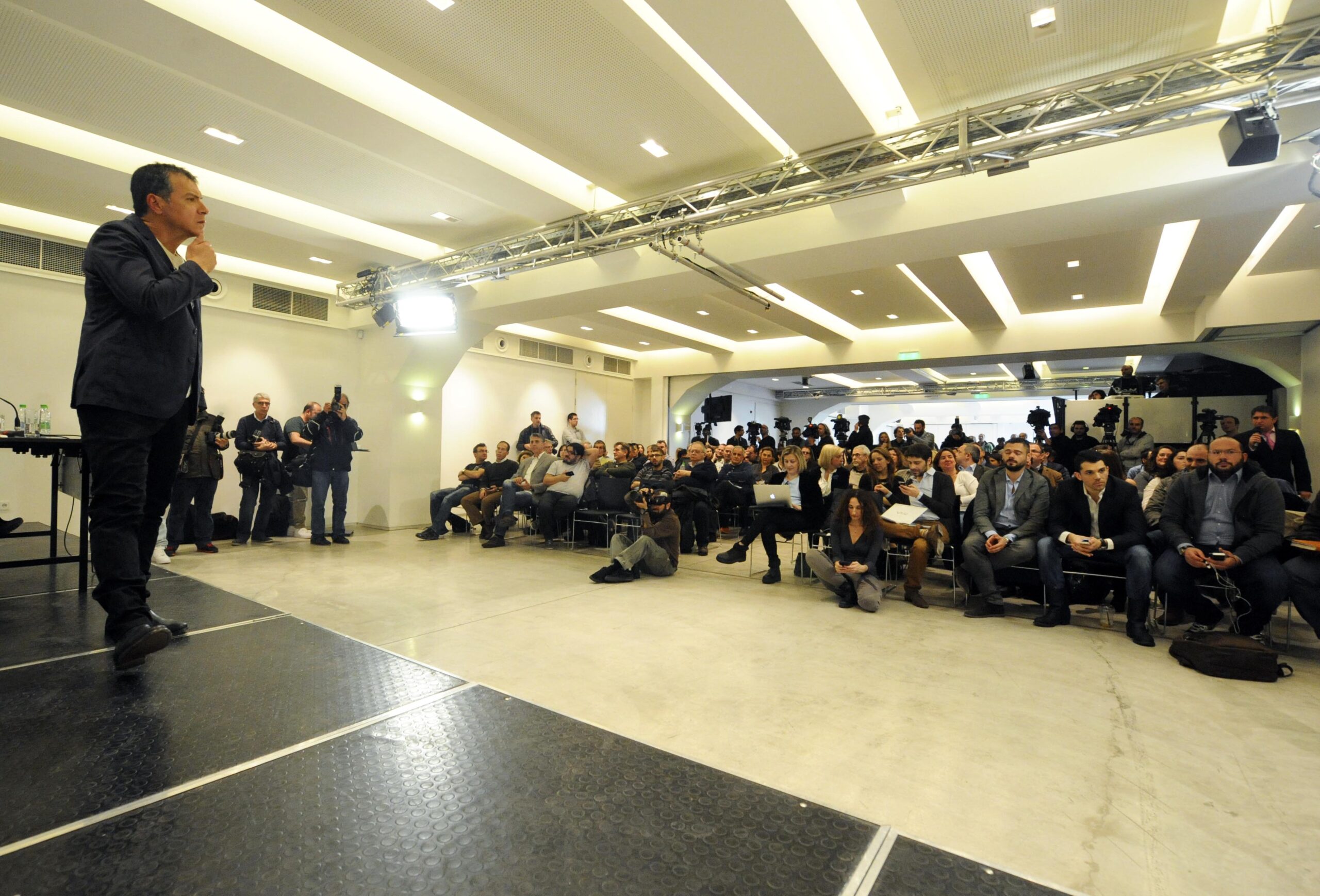 Κατάμεστη ήταν η αίθουσα στον πολυχώρο The Hub Events στα Πετράλωνα, από δημοσιογράφους και συνεργάτες του Σταύρου Θεοδωράκη.